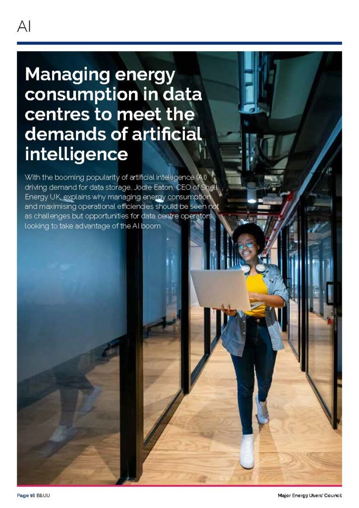 With the booming popularity of artificial intelligence (AI) riving demand for data storage, Jodie Eaton, CEO of Shell Energy UK, explains why managing energy consumption and maximising operational efficiencies should be seen not as challenges but opportunities for data centre operators looking to take advantage of the AI boom.