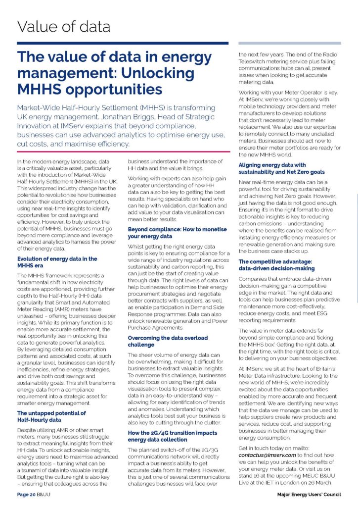Market-Wide Half-Hourly Settlement (MHHS) is transforming UK energy management. Jonathan Briggs, Head of Strategic Innovation at IMServ explains that beyond compliance, businesses can use advanced analytics to optimise energy use, cut costs, and maximise efficiency.
