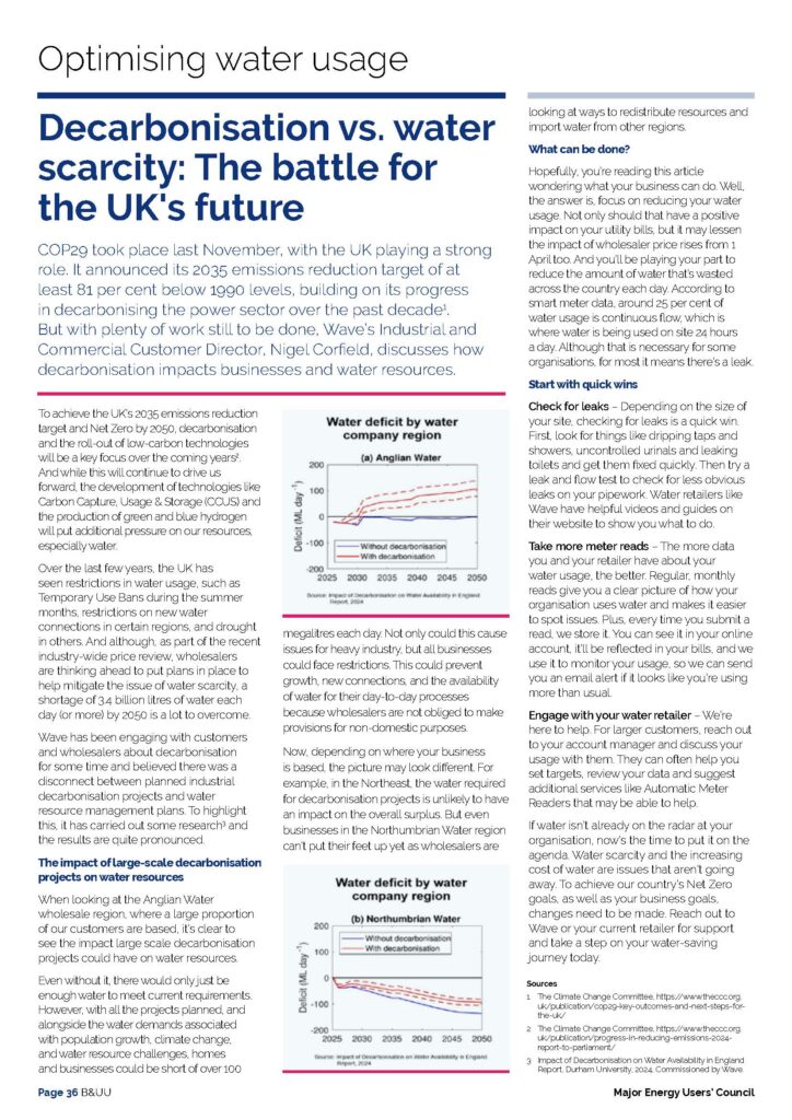 Wave’s Industrial and Commercial Customer Director, Nigel Corfield, discusses how decarbonisation impacts businesses and water resources.