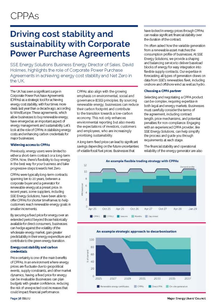 SSE Energy Solutions Business Energy Director of Sales, David Holmes, highlights the role of Corporate Power Purchase Agreements in achieving energy cost stability and Net Zero in the UK.
