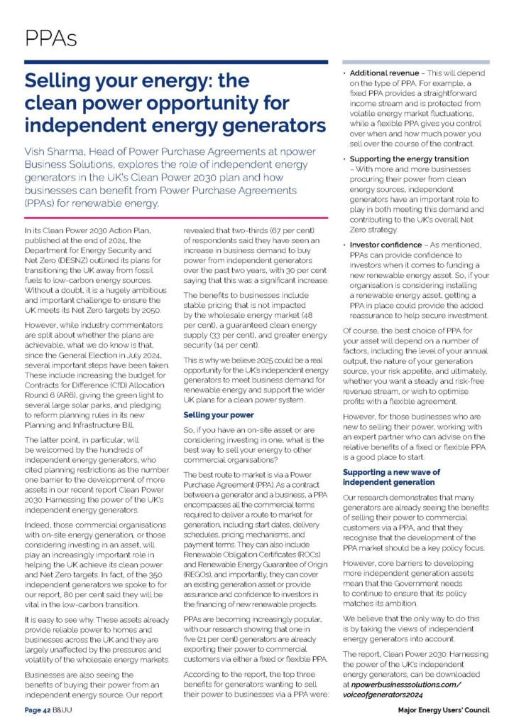 Vish Sharma, Head of Power Purchase Agreements at npower Business Solutions, explores the role of independent energy