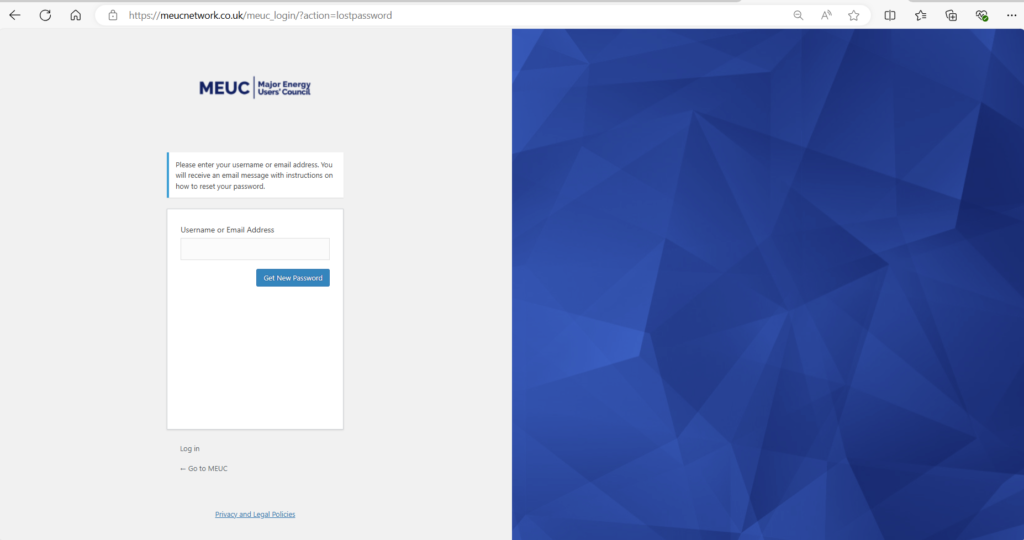 • Visit https://meucnetwork.co.uk/meuc_login/?action=lostpassword this will take you to the reset password page.