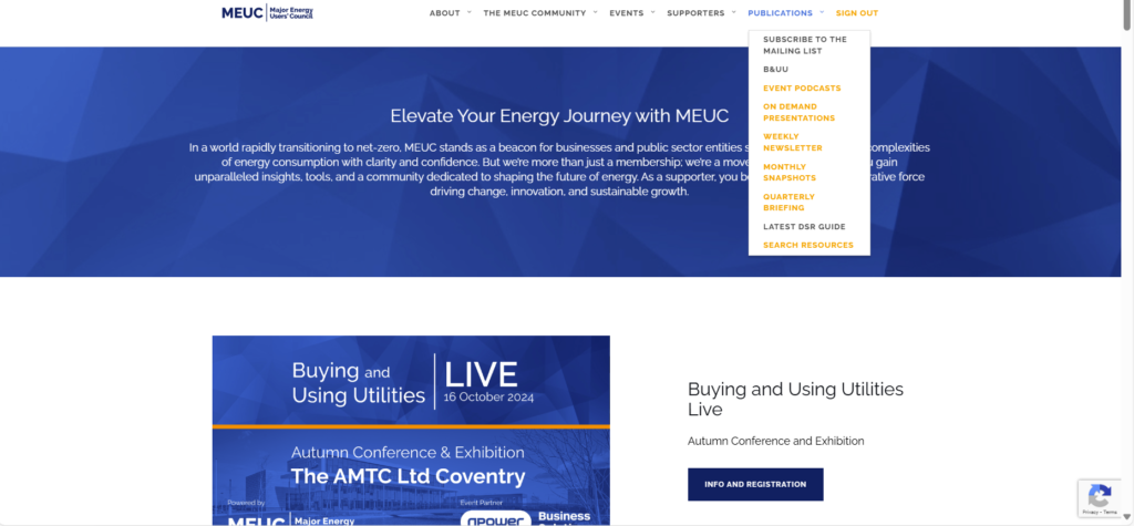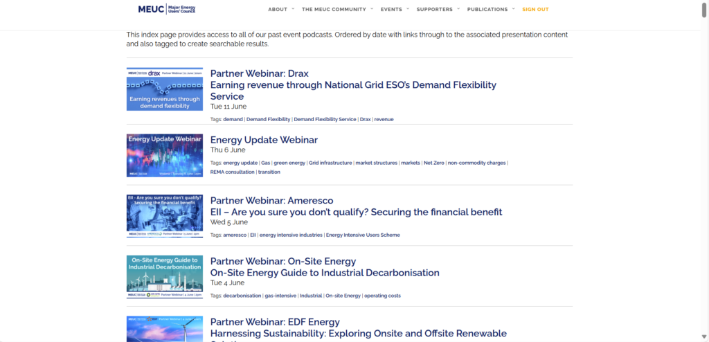 Member-only content currently includes searchable and tagged Weekly Newsletters, Monthly Snapshots, Quarterly Briefings, Past Event Podcasts (with MEUC CPD) and On Demand Presentations. There are also direct email links for contacting members of MEUC team.